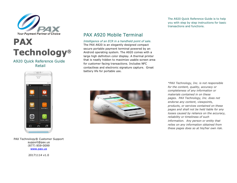 4G LTE | Wi-Fi | Bluetooth | 5.5-inch touch screen | High-speed thermal printer | Chip | NFC| Mobile Wallet | QR Code Scanning | Portable