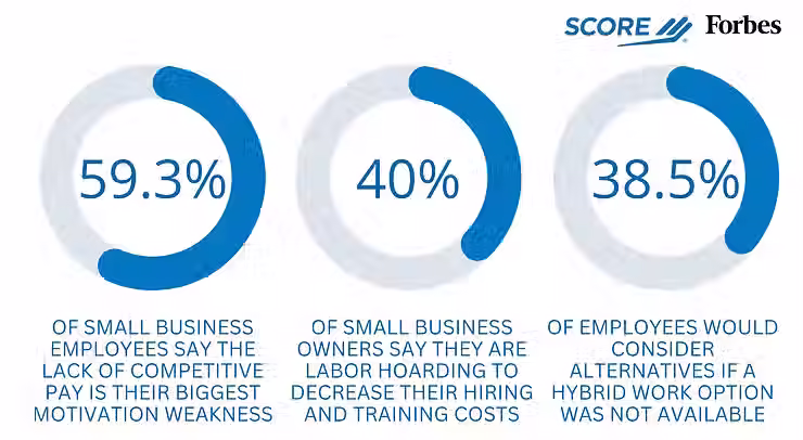 Numerous factors contribute to employee dissatisfaction, with wages being a significant concern for 59.3% of small business employees. Additionally, the absence of comprehensive healthcare and benefits packages contributes to a lack of motivation among workers, with up to 40% of small business owners saying they are labor hoarding to decrease their hiring and training costs. Burnout is prevalent, affecting 38.5% of employees and resulting in decreased productivity, higher turnover rates, and increased healthcare costs.